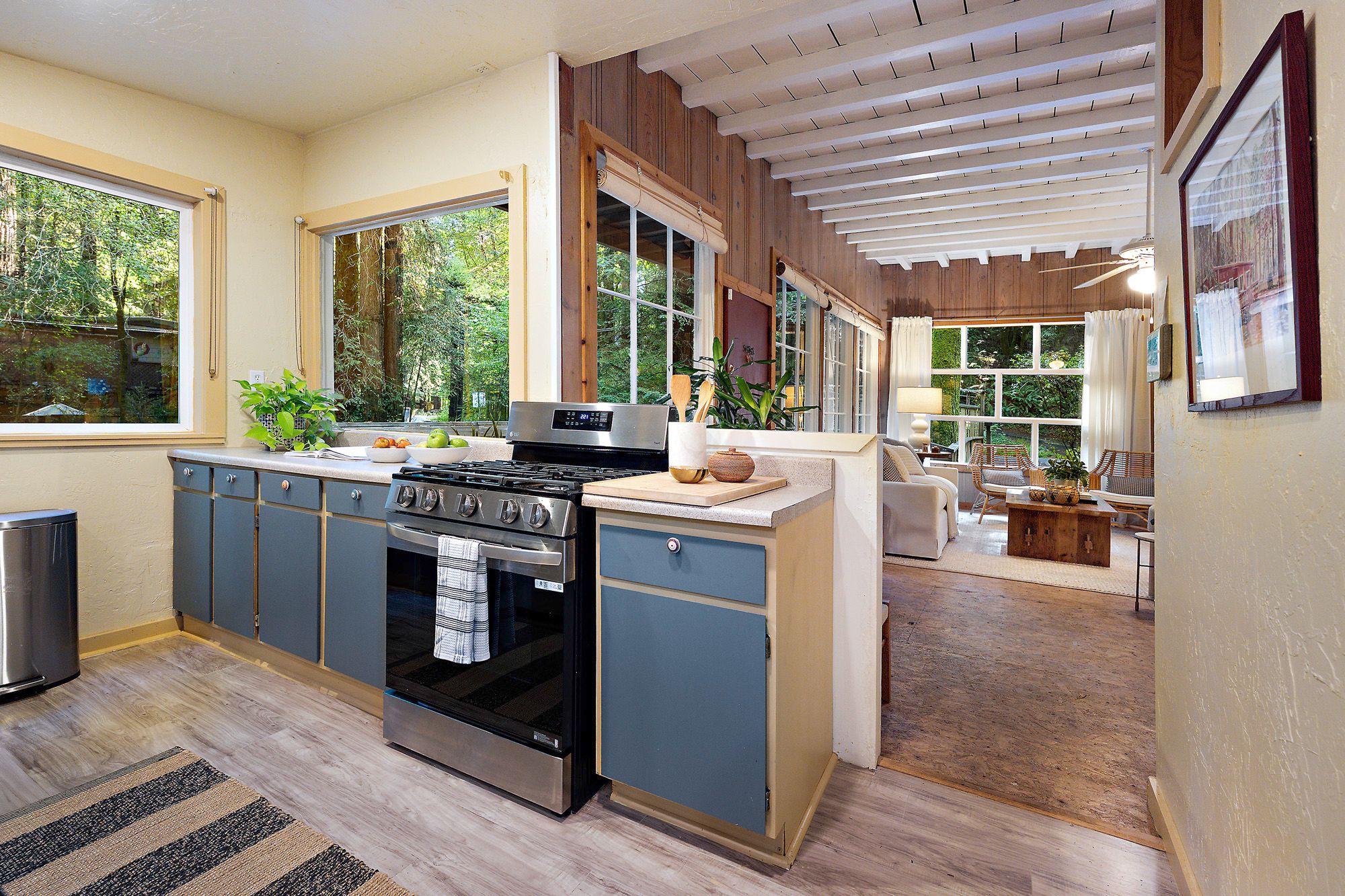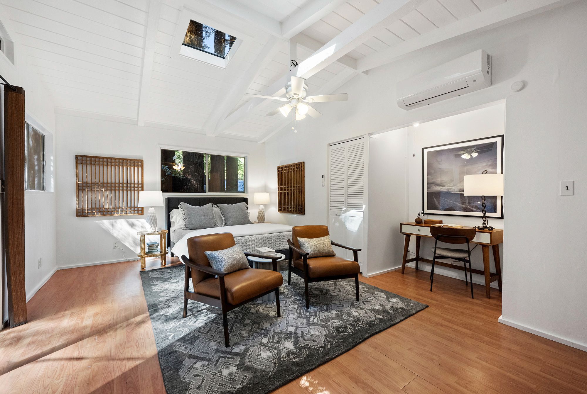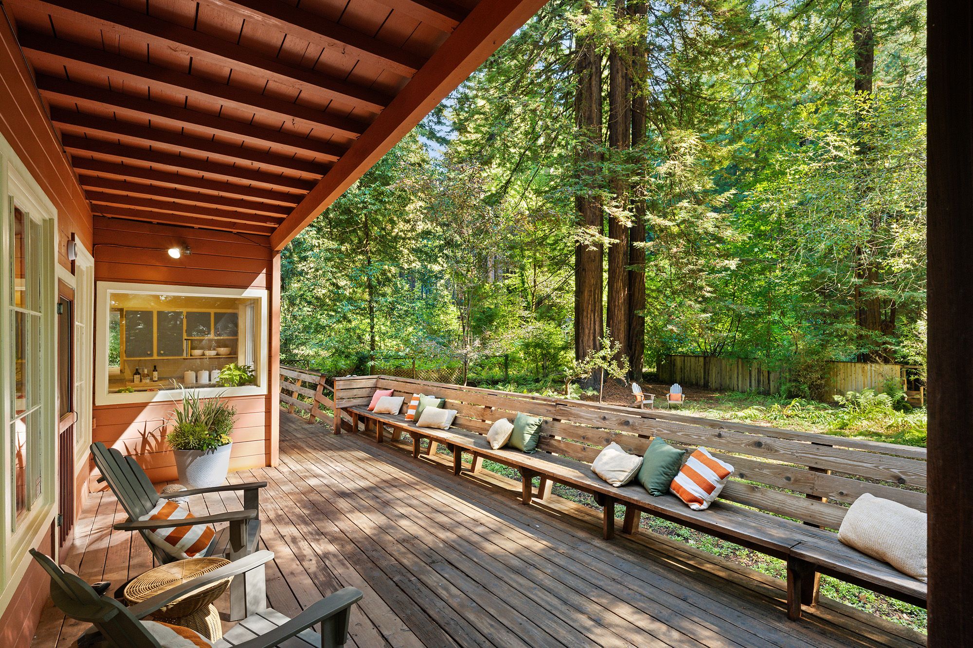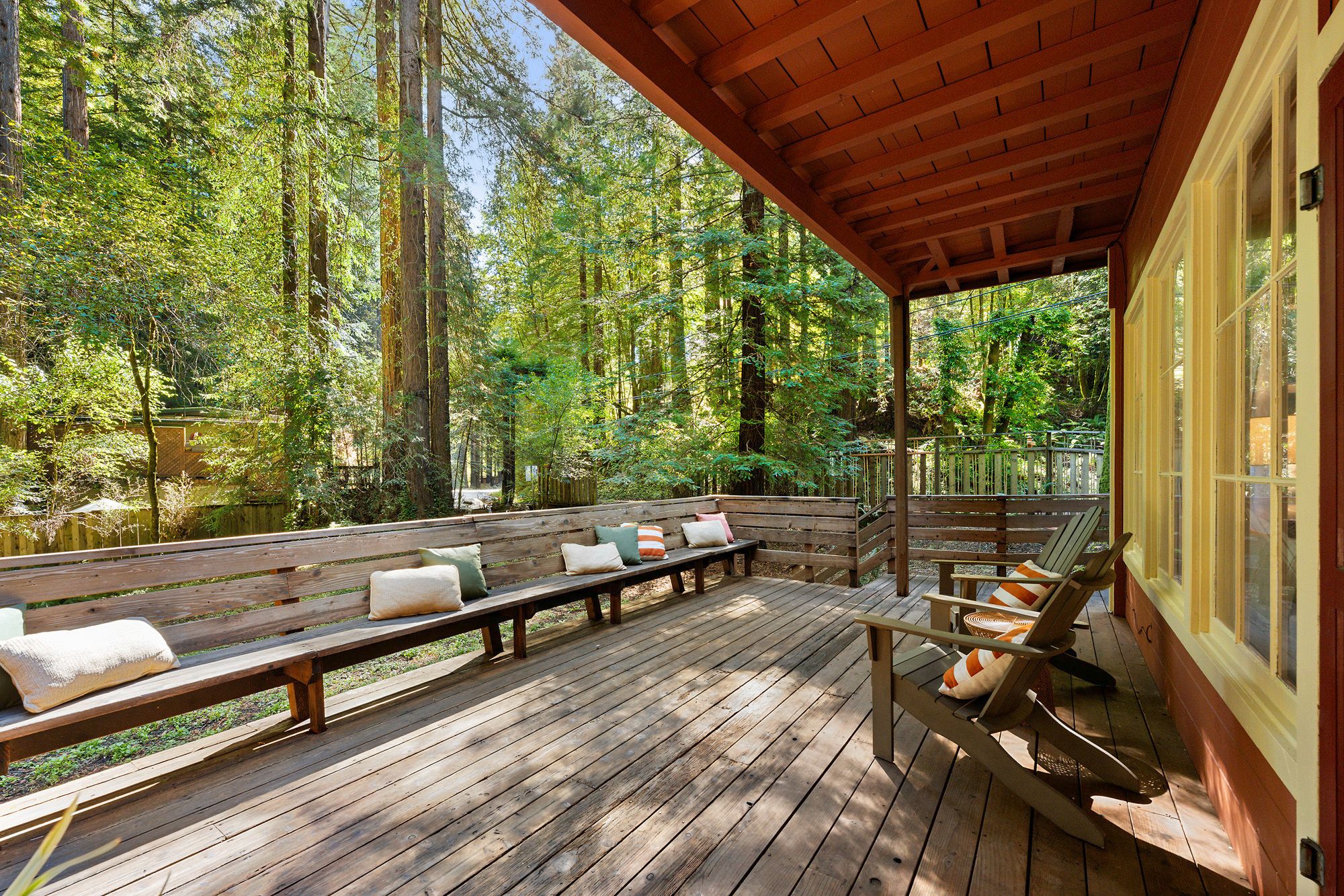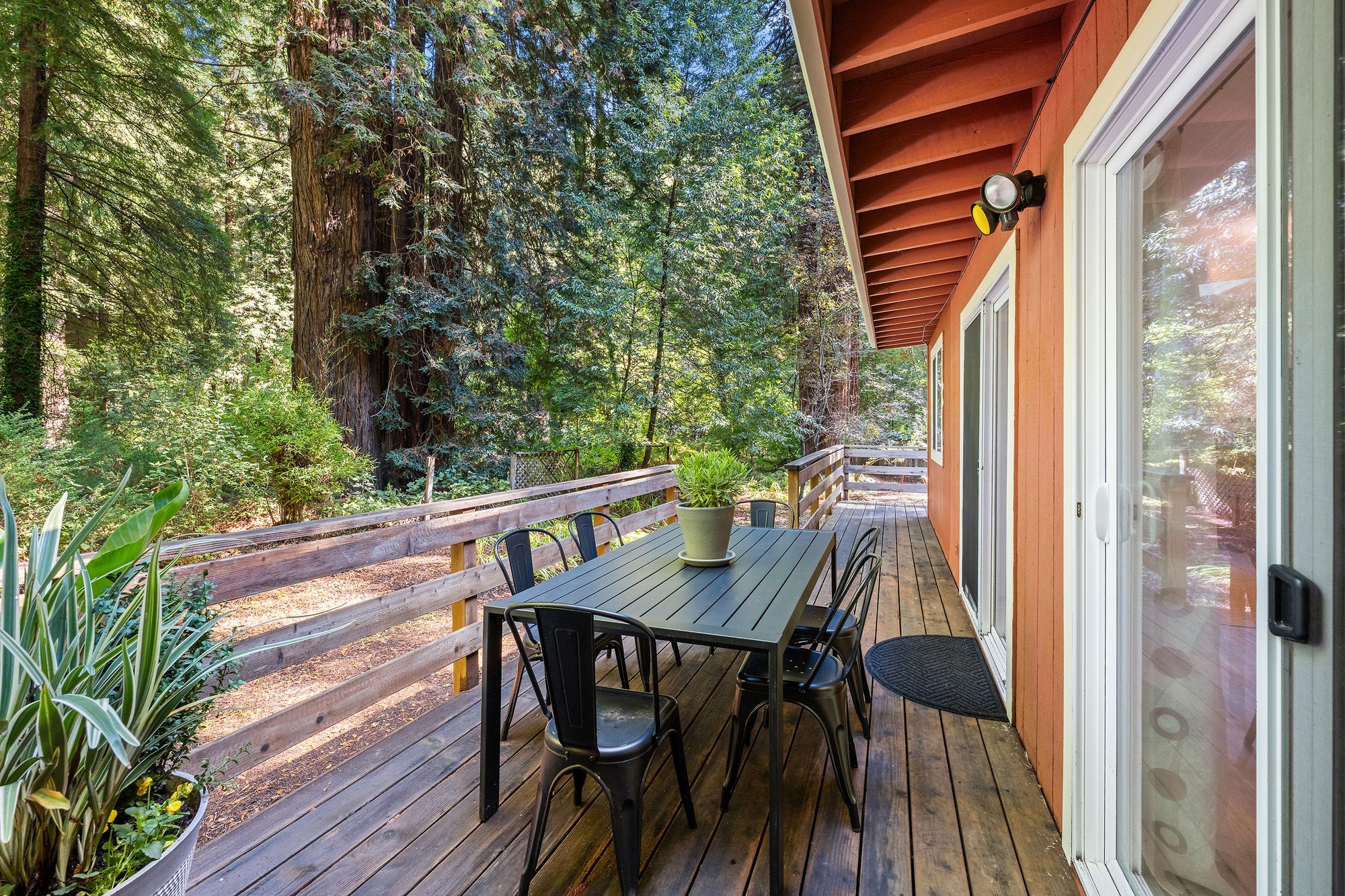 Surrounded by filtered sunlight and the quiet grace of towering trees, lies a truly rare offering: a lovingly maintained residence for the first time on the market in more than 40 years. Set on nearly half an acre, this 1,558 sqft home offers 2 bedrooms and 1 bath. Step into storybook charm via a broad, sun-soaked wrap-around deck with built-in bench seating, a gracious welcome, perfect for both quiet mornings and festive gatherings. Inside, you'll find exposed craft-beams, vaulted wood ceilings, and wood burning stoves with mini splits for instant heat, conjuring a refined yet rustic mid-century cabin-style aesthetic. Bright and open, the kitchen is gracefully positioned between the dining and family areas, where natural light pours in, creating a perfect flow for effortless entertaining. The primary suite is a serene retreat: imagine arched ceilings, wood beams, generous windows overlooking the forest, and exterior access to a spacious deck. Outside, a self-contained bonus space with a private entrance offers the perfect spot for guests, a creative studio, or a personal retreat. The level lot offers generous parking, including space for an RV or boat, and just a few doors down, you’ll find convenient access to Austin Creek, a peaceful escape for nature lovers and outdoor adventurers alike. A rare presentation: fully and truly one-of-a-kind. Don't miss this opportunity to own a piece of tranquil sophistication in Cazadero.