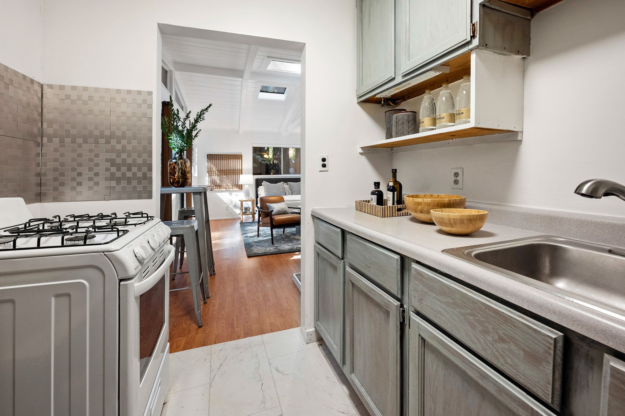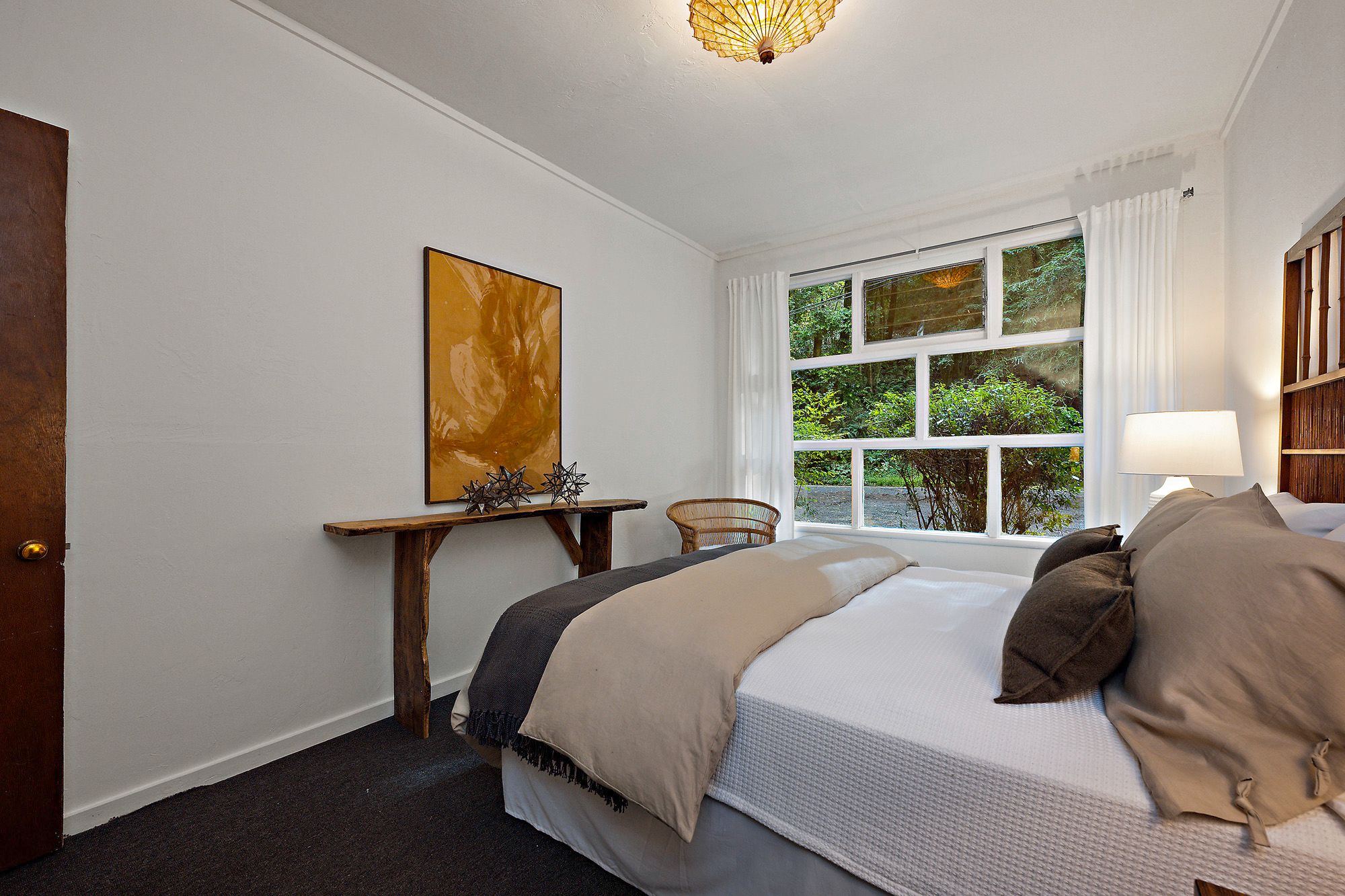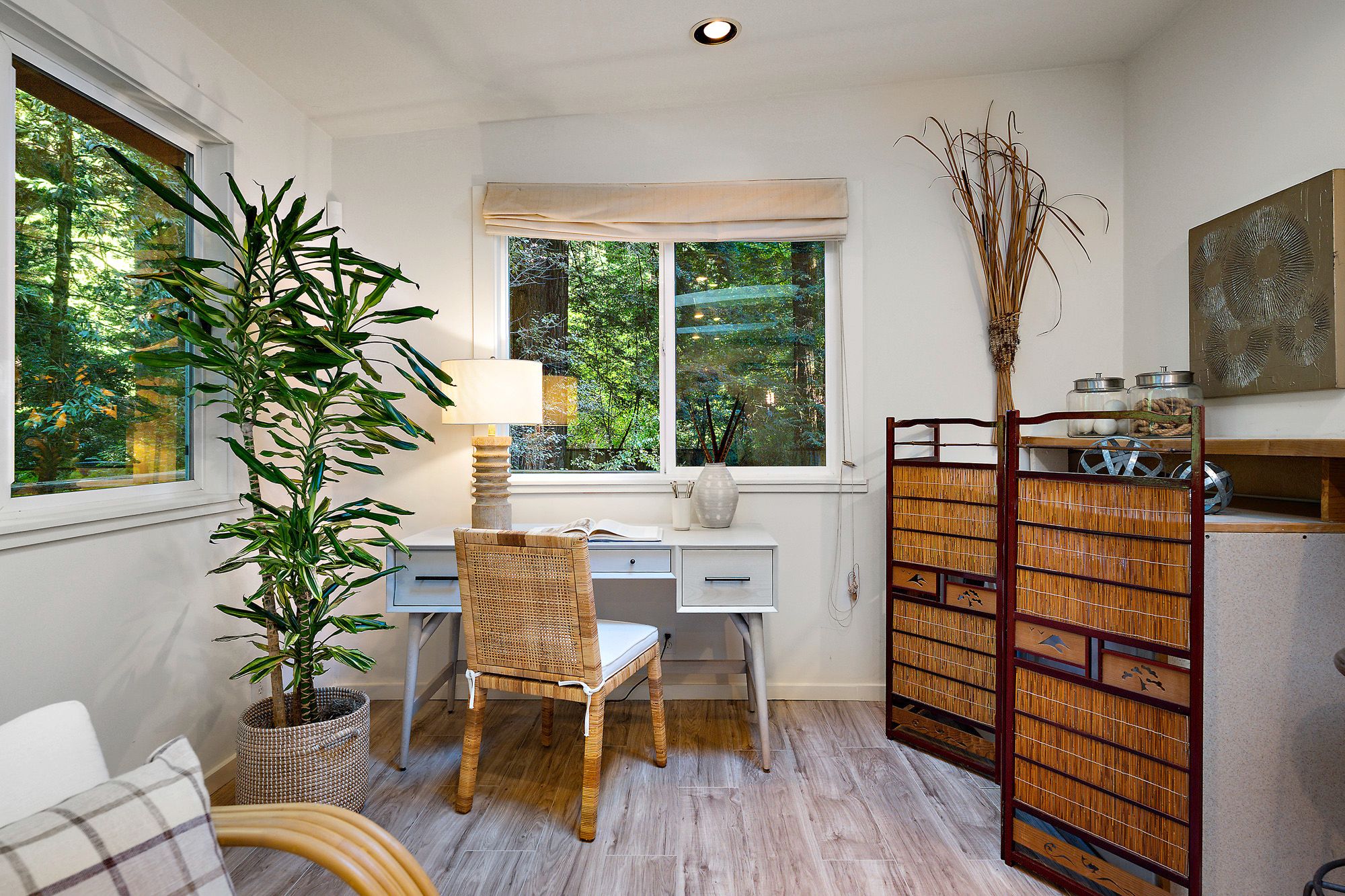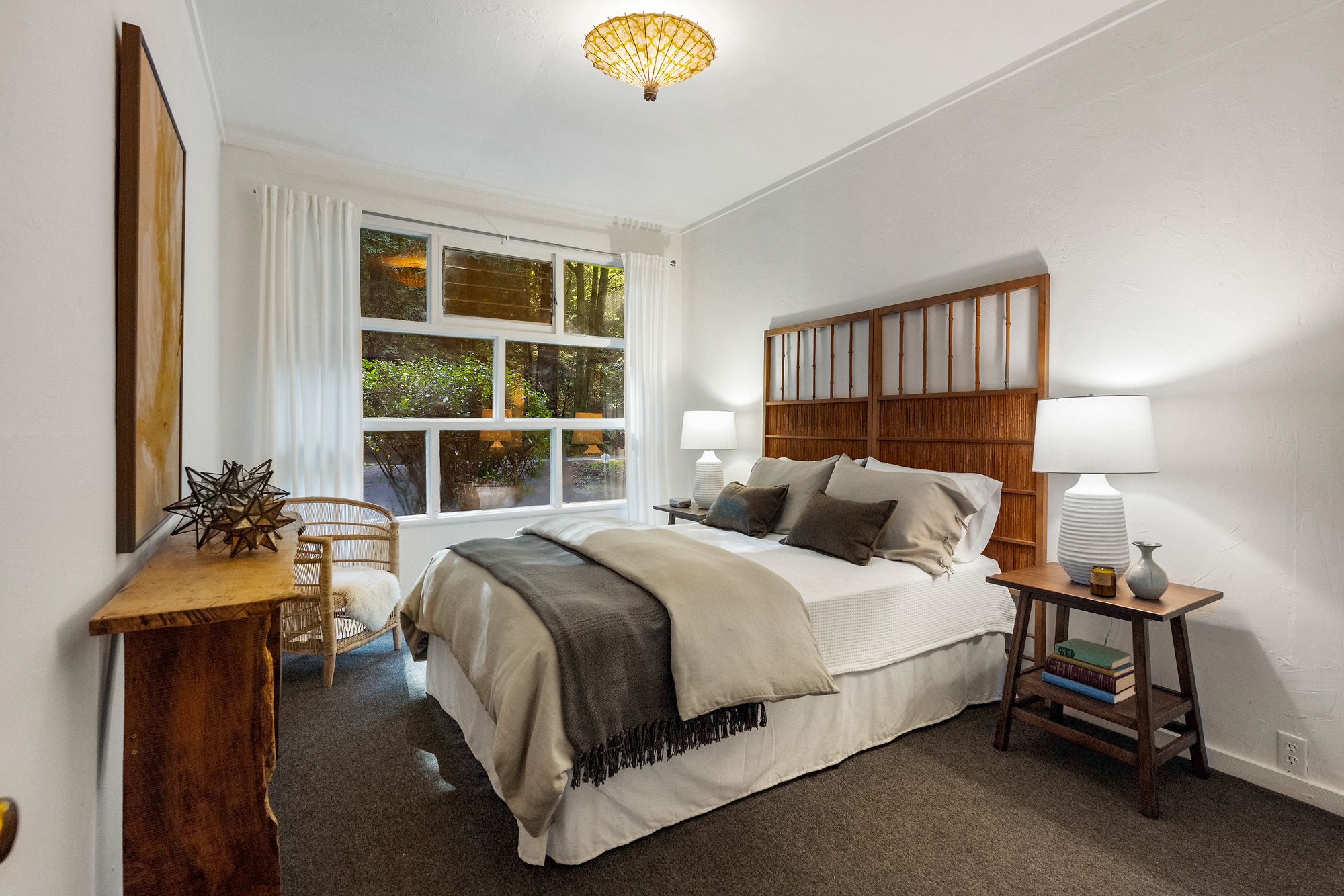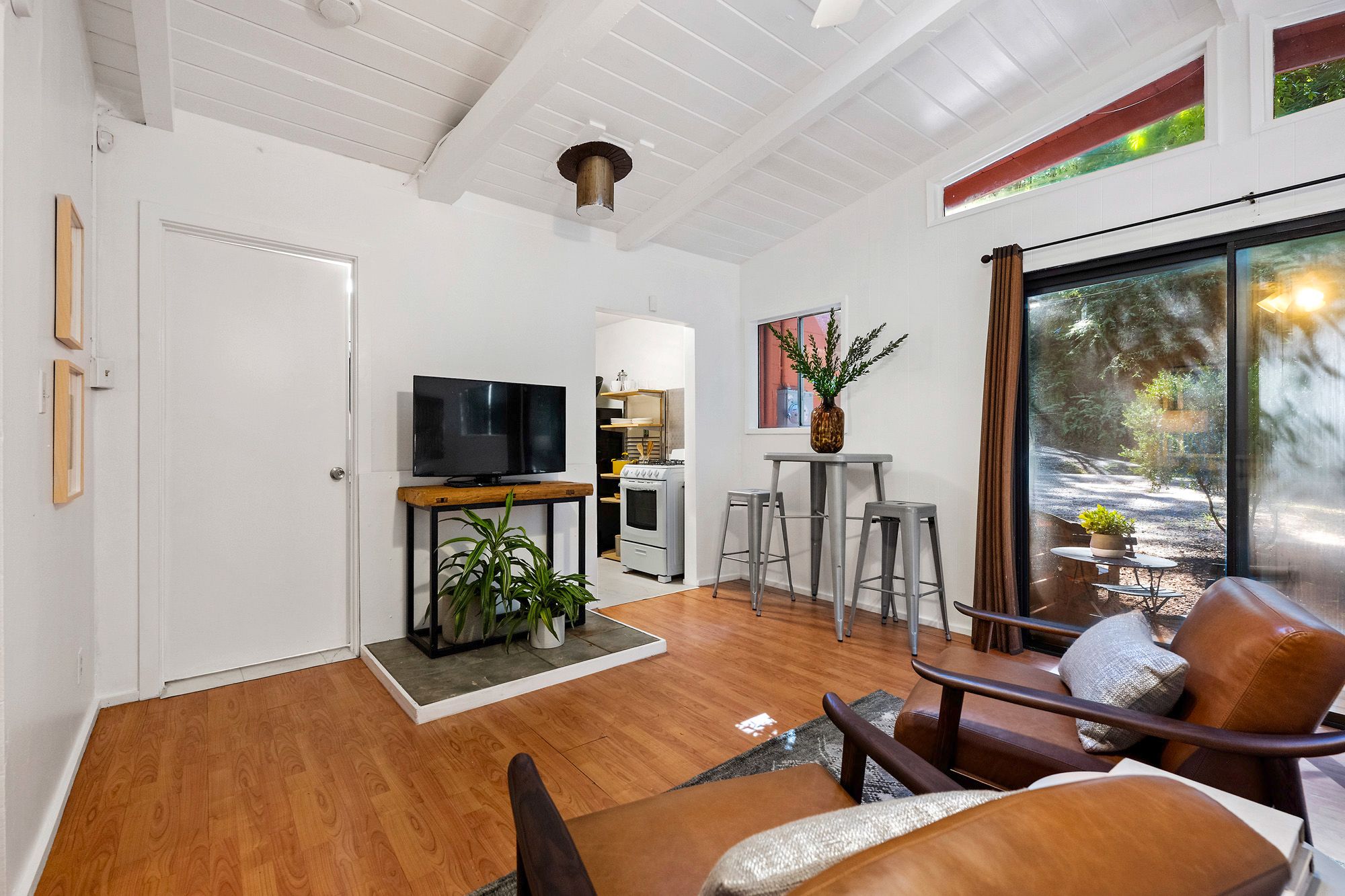 Surrounded by filtered sunlight and the quiet grace of towering trees, lies a truly rare offering: a lovingly maintained residence for the first time on the market in more than 40 years. Set on nearly half an acre, this 1,558 sqft home offers 2 bedrooms and 1 bath. Step into storybook charm via a broad, sun-soaked wrap-around deck with built-in bench seating, a gracious welcome, perfect for both quiet mornings and festive gatherings. Inside, you'll find exposed craft-beams, vaulted wood ceilings, and wood burning stoves with mini splits for instant heat, conjuring a refined yet rustic mid-century cabin-style aesthetic. Bright and open, the kitchen is gracefully positioned between the dining and family areas, where natural light pours in, creating a perfect flow for effortless entertaining. The primary suite is a serene retreat: imagine arched ceilings, wood beams, generous windows overlooking the forest, and exterior access to a spacious deck. Outside, a self-contained bonus space with a private entrance offers the perfect spot for guests, a creative studio, or a personal retreat. The level lot offers generous parking, including space for an RV or boat, and just a few doors down, you’ll find convenient access to Austin Creek, a peaceful escape for nature lovers and outdoor adventurers alike. A rare presentation: fully and truly one-of-a-kind. Don't miss this opportunity to own a piece of tranquil sophistication in Cazadero.
